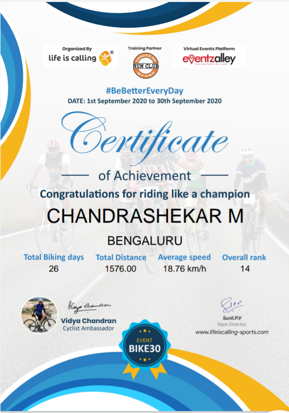 Coming back to virtual events, advantage of these events is your one activity will be counted for all the challenges/events. Virtual cycling spree continued in September, In fact it was in peak. I registered for 4 virtual events!