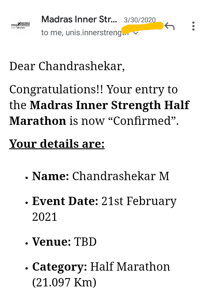 One more month short to Madras Inner Strength Half Marathon, most of the organizers cancelled the events.
