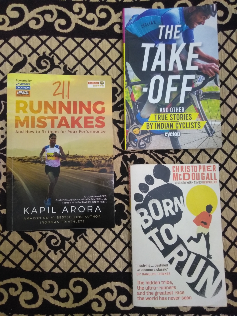 These are the books which kept me motivated all the way. Still reading ‘BORN TO RUN’, ‘21.1 RUNNING MISTAKES’ is a must read for beginners and ‘THE TAKE-OFF’ is full of inspirational stories of individual cyclists covering from beginners to pro’s. 🤓