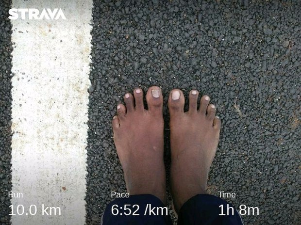During these training sessions I found interest in new way of running “BAREFOOT Running“. After searching in internet I realized that overnight we cannot transition from cushioned shoe to barefoot running, hence bought a ‘Quadrillion’ minimalistic shoe from Indian brand Azani.